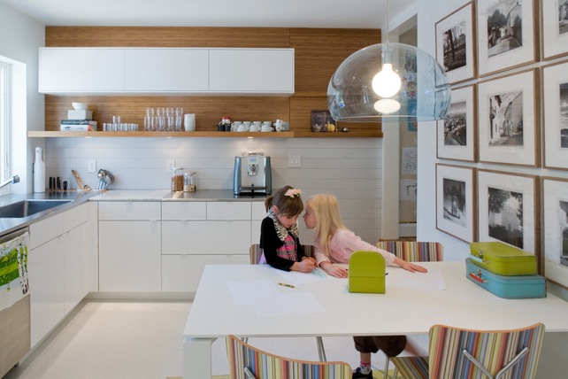 Ett kök jag verkligen gillar. Modernt, praktiskt, lekfulla färgaccenter, personlig fotovägg. Ovanligt läckert, trots sin relativt lilla yta.