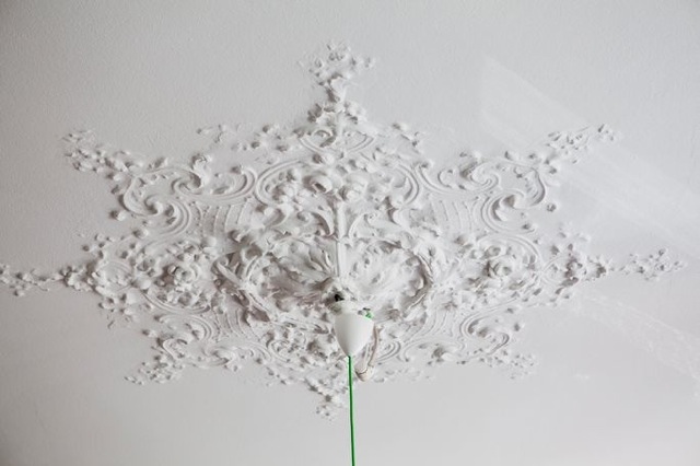 Bare stukkaturene i taket får meg til å si ja takk til denne leiligheten 🙂