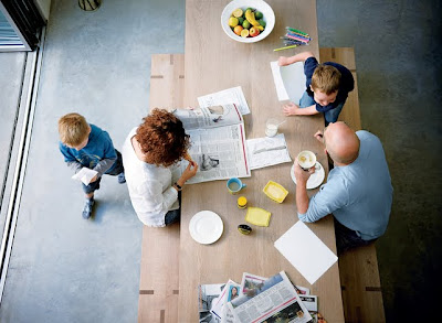 Family time; everyone doing their own thing but at the same time interacting. All gathered around the stylish and practical dining table.