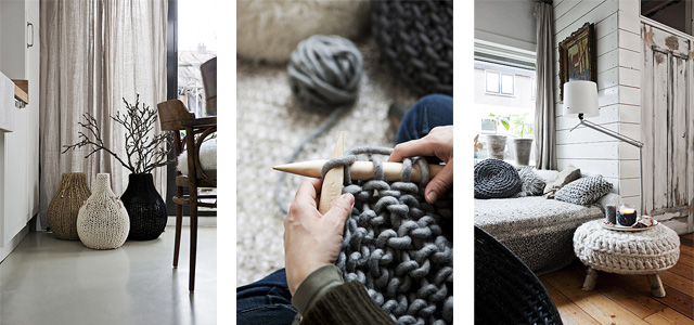 It’s safe to say that knitting and crafts is a big trend in decoration. I’m glad it’s, and I hope it’s here to stay. When you think about it; with knitted products a depth and warmth is achieved, this through the yarns and patterns texture. Heavenly: both visual and tactile.