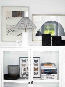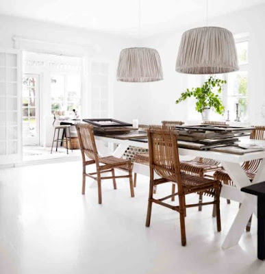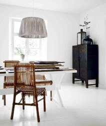 Here they have combined a simple color palette with a variation in tactile and visual materials to create that {wow}effect. I am assuming the dining area missed depth since in this particular shot they styled the table with various frames: a lovely idea.