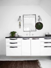 The cabinet handles are made of leather. Years ago I sketched drawer units with similar handles. It’s the first time I am actually seeing them in ‘real’. You can buy these handles over at Tine K Home.