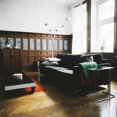 I am feeling inspired by the feel and details in this apartment. It’s sophisticated yet playful with the orange accent lamp.