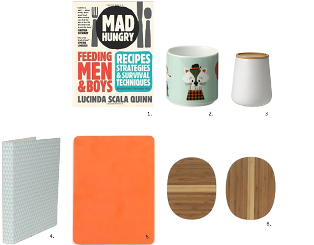 1. Mad Hungry: Feeding Men and Boys {Lucinda Scala Quinn/Amazon} a book I’ve had my eyes set on for a bit. I love the graphic inside the book. 2. A cute, fox cup. Wait, is that a fox? Anyhow it’s adorable and would cheer me up in the morning. {Ferm Living} 3. A ceramic storage jar would look lovely in the kitchen {Occa-Home} 4. This binder would hold my recipes nicely {Ferm Living}. 5. A coral jolly butter board {Ferm Living} 6. Sandwich Plates genius idea! Must have now! {Occa-Home}