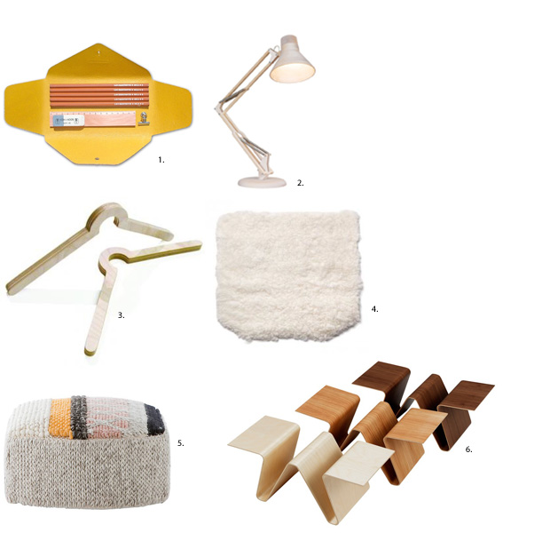 4. Seat Cover White from Hops-Shop -Brand: May Björklund 5. Mangas Puf Caramelo from Architonic -Brand: Gan 6. Papermaster from The Lollipop Shoppe -Brand: Swedese Designer: Torbjorn Anderssen